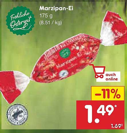 Sehen Sie sich jetzt das Marzipan-Ei Angebot im Netto Marken-Discount Prospekt an. Dieses Angebot ist gültig von 09.03.2025 bis 15.03.2025.