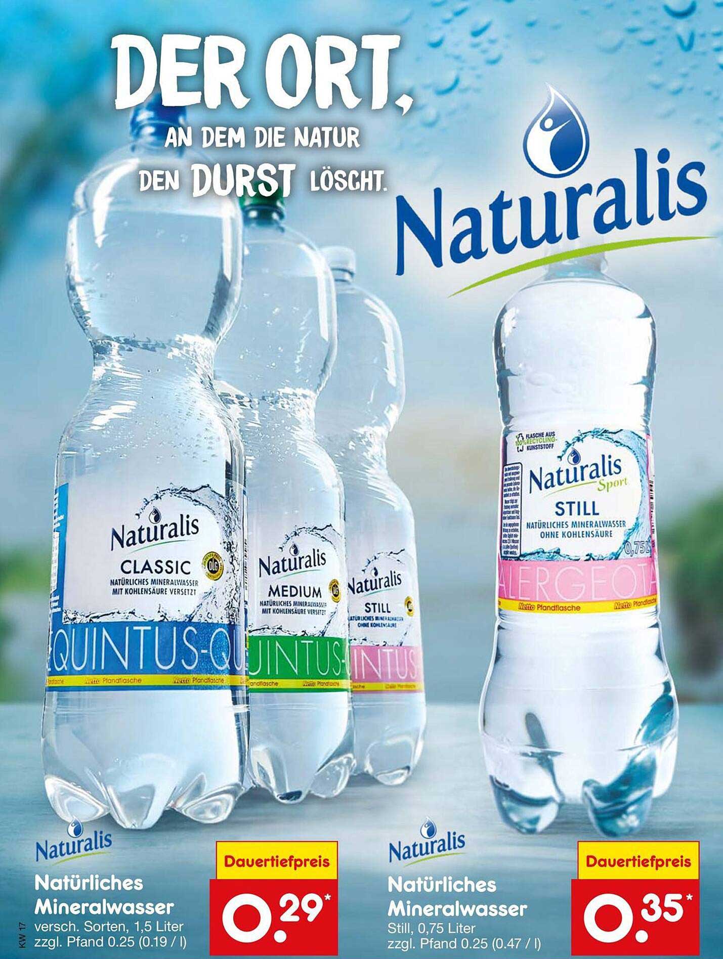 Sehen Sie sich jetzt das Natürliches Mineralwasser von Naturalis – Verschiedene Sorten, 1,5 Liter und 0,75 Liter Angebot im Netto Marken-Discount Prospekt an. Dieses Angebot ist gültig von 22.04.2025 bis 26.04.2025.