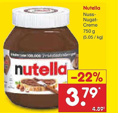 Sehen Sie sich das Nutella Nuss-Nugat-Creme Angebot bei Netto Marken-Discount an! Dieses fantastische Angebot ist jetzt im neuesten Netto Marken-Discount Prospekt verfügbar. Nutzen Sie diese Chance und sparen Sie viel bei Ihrem Einkauf.