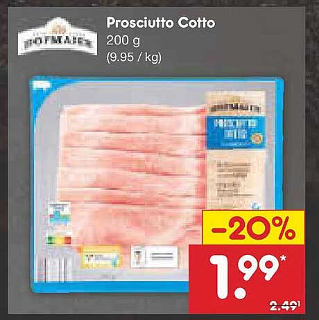 Entdecken Sie das großartige Prosciutto Cotto Angebot im neuesten Netto Marken-Discount Prospekt. Neben diesem Angebot finden Sie noch viele weitere attraktive Rabatte. Sie können das Prosciutto Cotto einfach online über die Netto Marken-Discount Website bestellen oder in einem Geschäft in Ihrer Nähe kaufen.