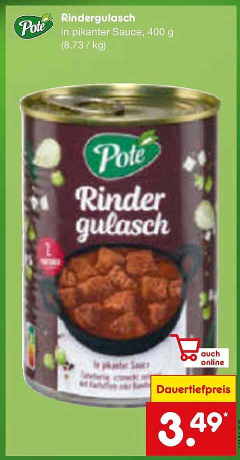 Entdecken Sie das großartige Rindergulasch Angebot im neuesten Netto Marken-Discount Prospekt. Neben diesem Angebot finden Sie noch viele weitere attraktive Rabatte. Sie können das Rindergulasch einfach online über die Netto Marken-Discount Website bestellen oder in einem Geschäft in Ihrer Nähe kaufen.