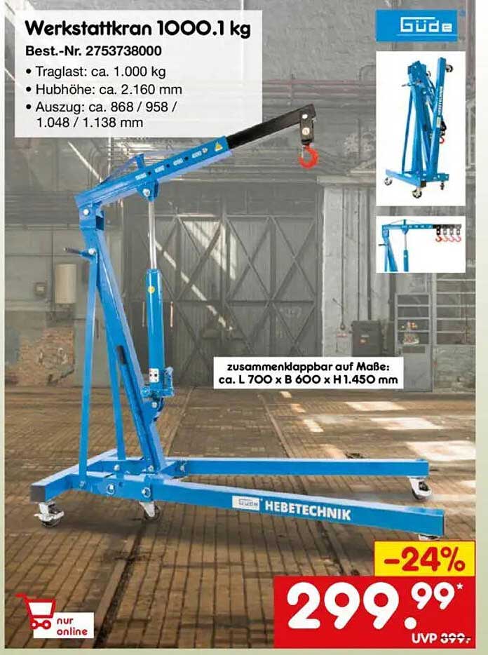 Sehen Sie sich jetzt das Werkstattkran 1000.1 kg Angebot im Netto Marken-Discount Prospekt an. Dieses Angebot ist gültig von 01.04.2025 bis 30.04.2025.