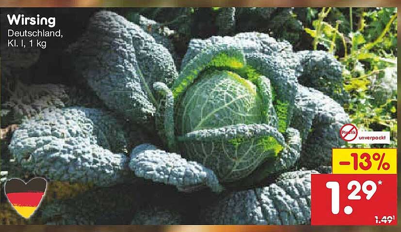 Sehen Sie sich das Wirsing Angebot bei Netto Marken-Discount an! Dieses fantastische Angebot ist jetzt im neuesten Netto Marken-Discount Prospekt verfügbar. Nutzen Sie diese Chance und sparen Sie viel bei Ihrem Einkauf.