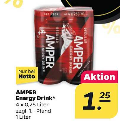 Sehen Sie sich jetzt das AMPER Energy Drink* Angebot im NETTO Prospekt an. Dieses Angebot ist gültig von 25.11.2024 bis 30.11.2024.