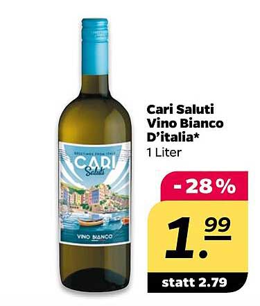 Der Cari Saluti Vino Bianco D'italia ist ein erfrischender Weißwein aus Italien, der ideal für gesellige Abende oder entspannte Sommernachmittage ist. Dieses Angebot ist perfekt für Weinliebhaber, die auf der Suche nach einem hervorragenden Preis-Leistungs-Verhältnis sind. Mit einem Rabatt von 28% ist dieser Weißwein ab dem 21. Juli bis zum 26. Juli in deinem NETTO-Markt erhältlich.