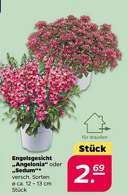 Sehen Sie sich jetzt das Engelsgesicht "Angelonia" oder "Sedum" - Verschiedene Sorten Angebot im NETTO Prospekt an. Dieses Angebot ist gültig von 21.07.2025 bis 26.07.2025.