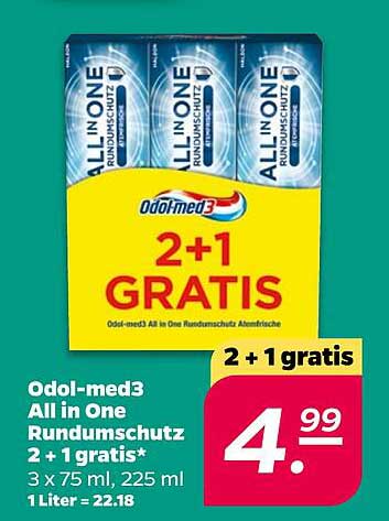 Sehen Sie sich jetzt das Odol-med3 All in One Rundumschutz 2 + 1 gratis Angebot im NETTO Prospekt an. Dieses Angebot ist gültig von 03.11.2025 bis 08.11.2025.