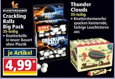 Entdecken Sie das großartige Crackling Ballz Big Pack Angebot im neuesten Norma Prospekt. Neben diesem Angebot finden Sie noch viele weitere attraktive Rabatte. Sie können das Crackling Ballz Big Pack einfach online über die Norma Website bestellen oder in einem Geschäft in Ihrer Nähe kaufen.