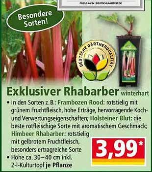 Sehen Sie sich jetzt das Exklusiver Rhabarber winterhart Angebot im Norma Prospekt an. Dieses Angebot ist gültig von 14.04.2025 bis 20.04.2025.