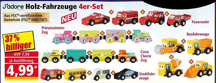 J'adore Holz-Fahrzeuge 4Er-Set Angebot bei Norma