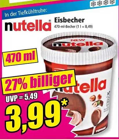 Sehen Sie sich das Nutella Eisbecher Angebot bei Norma an! Dieses fantastische Angebot ist jetzt im neuesten Norma Prospekt verfügbar. Nutzen Sie diese Chance und sparen Sie viel bei Ihrem Einkauf.