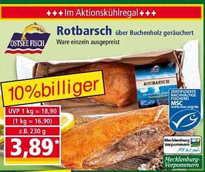 Sehen Sie sich jetzt das Rotbarsch über Buchenholz geräuchert Angebot im Norma Prospekt an. Dieses Angebot ist gültig von 27.10.2025 bis 02.11.2025.