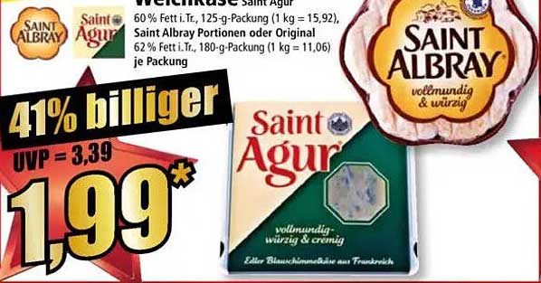 Sehen Sie sich das Saint Agur Angebot bei Norma an! Dieses fantastische Angebot ist jetzt im neuesten Norma Prospekt verfügbar. Nutzen Sie diese Chance und sparen Sie viel bei Ihrem Einkauf.