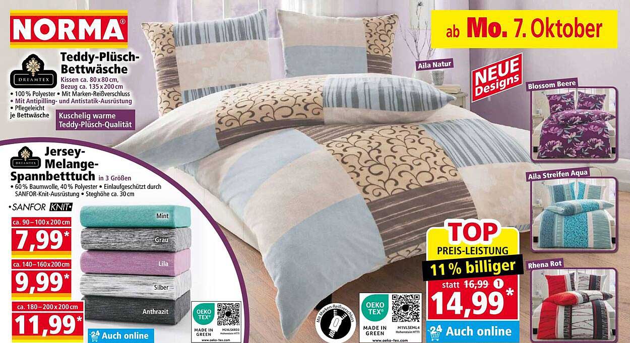 Sehen Sie sich das Teddy-Plüsch-Bettwäsche Angebot bei Norma an! Dieses fantastische Angebot ist jetzt im neuesten Norma Prospekt verfügbar. Nutzen Sie diese Chance und sparen Sie viel bei Ihrem Einkauf.