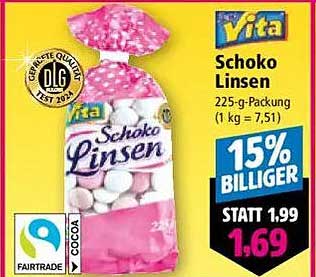 Liebe Naschkatzen und Süßigkeitenliebhaber! Dieses Angebot von Vita bringt süße Freude in Ihr Leben. Die beliebten Schoko Linsen, die in einer praktischen 225g-Packung erhältlich sind, sind jetzt zu einem unwiderstehlichen Preis erhältlich. Perfekt für Ihren nächsten Spieleabend oder einfach zum genießen zwischendurch – holen Sie sich den Schokoladengenuss! Und das Beste: Dieses Angebot gilt nur für kurze Zeit, vom 31. März bis 6. April 2025.