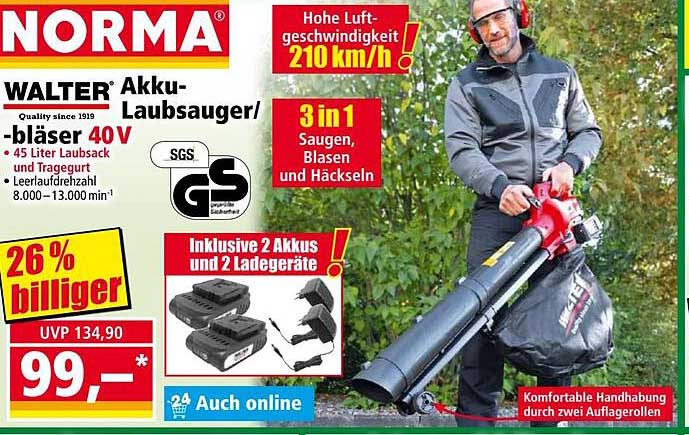Walter Akku-Laubsauger/ -Bläser 40V Angebot bei Norma