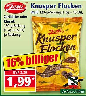 Sehen Sie sich das Zetti Knusper Flocken Angebot bei Norma an! Dieses fantastische Angebot ist jetzt im neuesten Norma Prospekt verfügbar. Nutzen Sie diese Chance und sparen Sie viel bei Ihrem Einkauf.