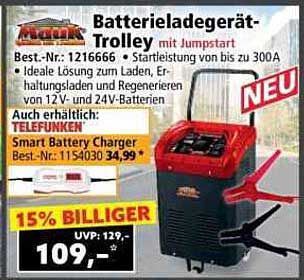 Sehen Sie sich jetzt das Batterieladegerät-Trolley mit Jumpstart Angebot im Norma24 Prospekt an. Dieses Angebot ist gültig von 27.10.2025 bis 02.11.2025.