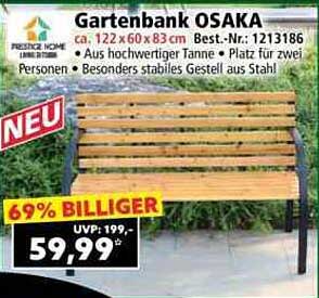 Der aktuelle Preis der Gartenbank OSAKA beträgt nur 59,99 €, was eine beeindruckende Ersparnis von 69 % im Vergleich zur UVP von 199 € darstellt. Diese Preisreduzierung macht die Gartenbank zu einem attraktiven Angebot, das man sich nicht entgehen lassen sollte. Investieren Sie in Komfort und Stil für Ihren Garten, ohne Ihr Budget zu sprengen!