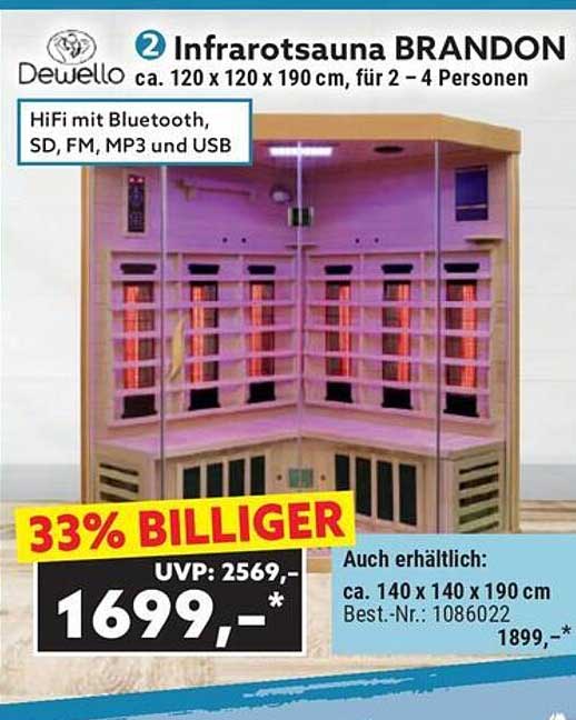 Die Infrarotsauna BRANDON ist die perfekte Lösung für all jene, die Entspannung und Wellness in den eigenen vier Wänden genießen möchten. Mit einer großzügigen Größe von ca. 120 x 120 x 190 cm bietet sie ausreichend Platz für 2 bis 4 Personen. Die innovative Technik sorgt dafür, dass Sie die Vorteile der Infrarotwärme in vollen Zügen erleben können. Ideal für gemütliche Abende mit Freunden oder zur persönlichen Erholung nach einem langen Tag.