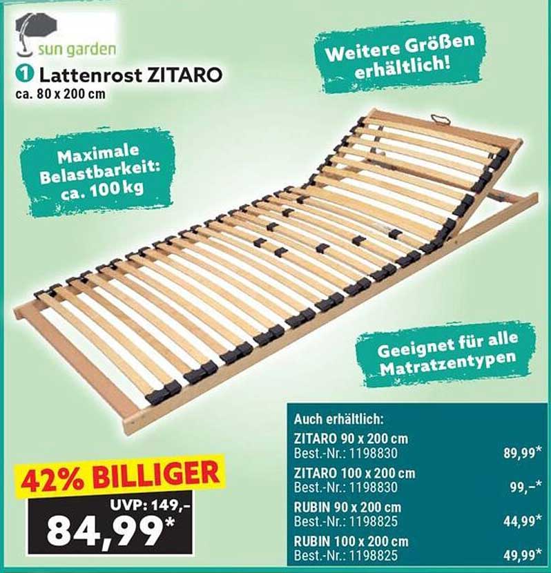 Der Lattenrost ZITARO ist eine hervorragende Wahl für jeden, der Wert auf einen komfortablen Schlaf legt. Mit seiner besonderen Konstruktion bietet er optimale Unterstützung für Ihre Matratze und garantiert einen erholsamen Schlaf. Dieses Angebot ist nicht nur preislich attraktiv, sondern auch ideal für alle, die auf Qualität setzen.