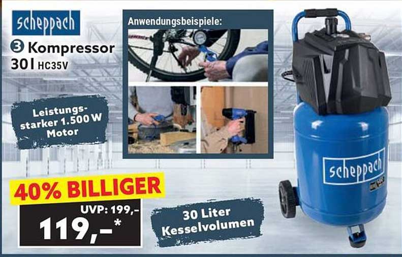 Mit einem Preis von lediglich 119,- € erhalten Sie einen Kompressor, der zuvor mit 199,- € gelistet war. Dies bedeutet eine beeindruckende Ersparnis von 40%! Nutzen Sie dieses großartige Angebot, um Ihre Projekte effizient umzusetzen, ohne Ihr Budget zu sprengen.