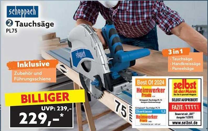 Der aktuelle Preis von 229,- € ist ein attraktives Angebot, insbesondere im Vergleich zur unverbindlichen Preisempfehlung (UVP) von 239,- €. Diese Ersparnis von 10,- € macht den Kauf der Scheppach Tauchsäge PL75 umso lohnenswerter. Ein hochwertiges Werkzeug zu einem fairen Preis – ein wahres Schnäppchen für alle, die Wert auf Qualität und Leistung legen.