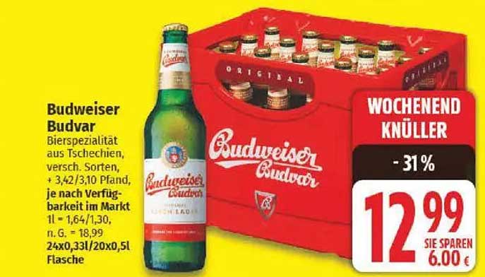 Entdecken Sie die unvergleichliche Bierspezialität Budweiser Budvar, die aus den besten Zutaten in Tschechien gebraut wird. Dieses besondere Bier hat sich einen Namen gemacht, der nicht nur für Qualität, sondern auch für Genuss steht. Wenn Sie ein Fan guter Biere sind, dürfen Sie dieses Angebot nicht verpassen. Vom 22.09.2025 bis zum 27.09.2025 haben Sie die Möglichkeit, Budweiser Budvar zu einem sensationellen Preis zu genießen.