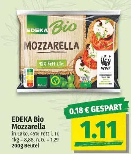 Genießen Sie den feinen Geschmack von EDEKA Bio Mozzarella, der ab dem 08. September bis zum 13. September zu einem unschlagbaren Preis von nur 1,11 € erhältlich ist. Dieses cremige Milchprodukt ist nicht nur eine herrliche Ergänzung für Ihre Gerichte, sondern auch ein Genuss, der Ihnen ein Stück italienisches Lebensgefühl nach Hause bringt. Perfekt für Pizza, Pasta oder als frischer Belag auf Ihrem Lieblingsbrot!