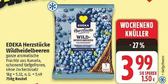 Sehen Sie sich jetzt das EDEKA Herzstücke Wildheidelbeeren 750g Beutel Angebot im NP Discount Prospekt an. Dieses Angebot ist gültig von 27.10.2025 bis 01.11.2025.