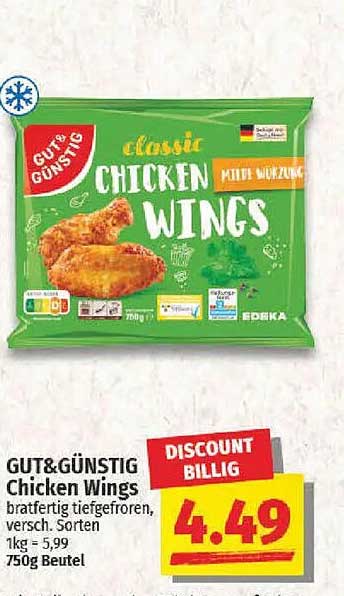 Aktuell sind die Chicken Wings für nur 4,49 € erhältlich, was im Vergleich zu einem Normalpreis von 5,99 € eine bemerkenswerte Ersparnis darstellt. Das ist eine Ersparnis von 1,50 €, die zeigt, wie vorteilhaft dieses Angebot ist. Es lohnt sich also, zugreifen!