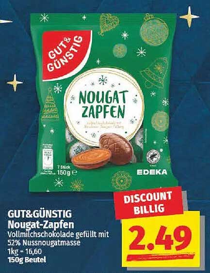 Aktuell sind die Nougat-Zapfen für nur 2,49€ erhältlich. Im Vergleich zum Normalpreis zeigt sich hier eine attraktive Ersparnis, die es lohnt, in Anspruch zu nehmen. Mit diesem Angebot können Sie die köstliche Qualität von GUT&GÜNSTIG zu einem besonders günstigen Preis genießen.