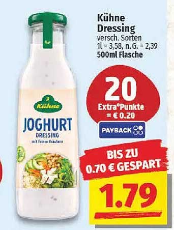 Mit einem Angebotspreis von nur 1,79 € haben Sie die Möglichkeit, bis zu 0,70 € im Vergleich zum regulären Preis von 2,49 € zu sparen. Das macht dieses Dressing nicht nur zu einer gesunden Wahl, sondern auch zu einer äußerst preiswerten Option für Ihre Küche.