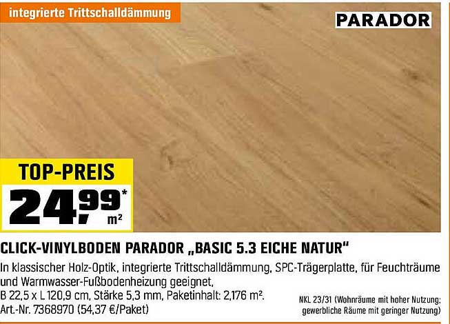 Sehen Sie sich jetzt das CLICK-VINYLBODEN PARADOR „BASIC 5.3 EICHE NATUR“ Angebot im OBI Prospekt an. Dieses Angebot ist gültig von 14.03.2025 bis 31.03.2025.