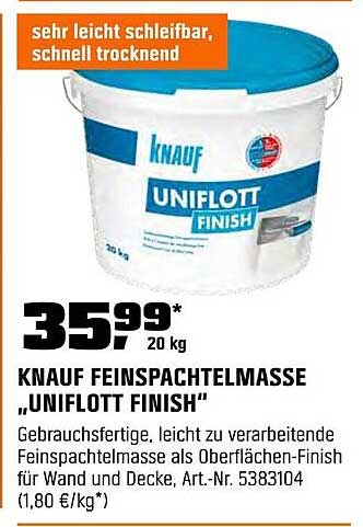 Sehen Sie sich jetzt das KNAAF FEINSPACHTELMASSE "UNIFLOTT FINISH" Angebot im OBI Prospekt an. Dieses Angebot ist gültig von 31.10.2025 bis 16.11.2025.