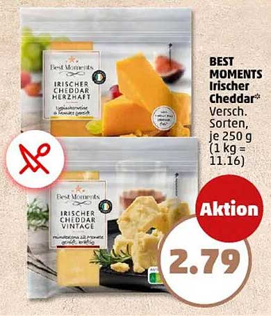 Sehen Sie sich jetzt das BEST MOMENTS Irischer Cheddar 250 g Angebot im Penny Prospekt an. Dieses Angebot ist gültig von 14.04.2025 bis 19.04.2025.