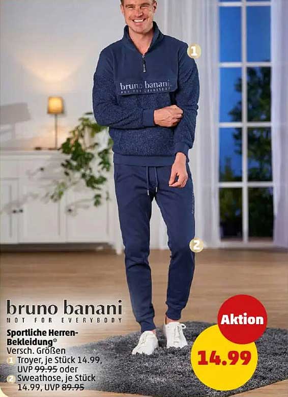 Sehen Sie sich das Bruno Banani Sportliche Herren-Bekleidung* Angebot bei Penny an! Dieses fantastische Angebot ist jetzt im neuesten Penny Prospekt verfügbar. Nutzen Sie diese Chance und sparen Sie viel bei Ihrem Einkauf.
