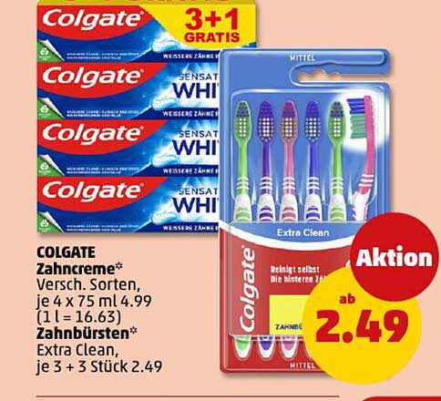 Sehen Sie sich das Colgate Zahnpasta* Zahnbürsten* Extra Clean Angebot bei Penny an! Dieses fantastische Angebot ist jetzt im neuesten Penny Prospekt verfügbar. Nutzen Sie diese Chance und sparen Sie viel bei Ihrem Einkauf.