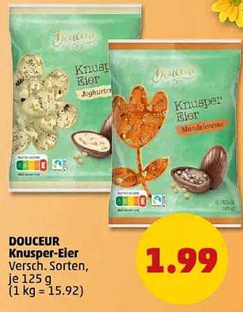Sehen Sie sich das Douceur Knusper-Eier Angebot bei Penny an! Dieses fantastische Angebot ist jetzt im neuesten Penny Prospekt verfügbar. Nutzen Sie diese Chance und sparen Sie viel bei Ihrem Einkauf.