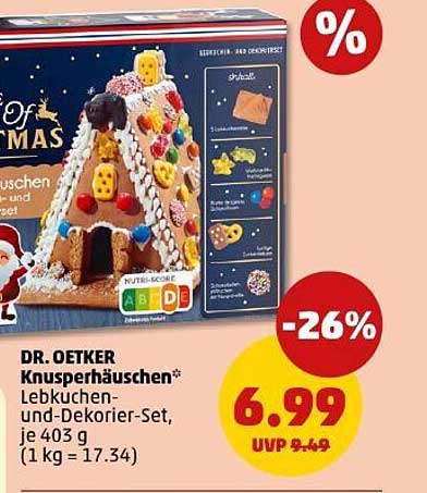 Sehen Sie sich jetzt das DR. OETKER Knusperhäuschen* Lebkuchen- und-Dekorier-Set, je 403 g Angebot im Penny Prospekt an. Dieses Angebot ist gültig von 03.11.2025 bis 08.11.2025.