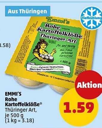 Sehen Sie sich jetzt das EMMI'S Rohe Kartoffelklöße Thüringer Art, je 500 g Angebot im Penny Prospekt an. Dieses Angebot ist gültig von 22.09.2025 bis 27.09.2025.