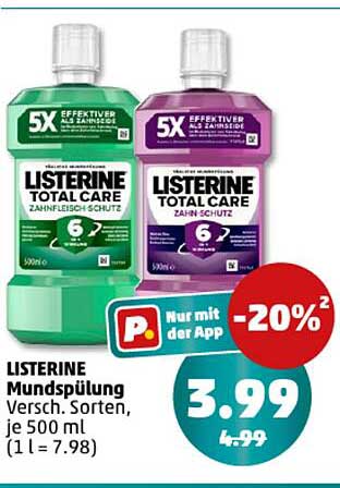 Sehen Sie sich das Listerine Mundspülung Angebot bei Penny an! Dieses fantastische Angebot ist jetzt im neuesten Penny Prospekt verfügbar. Nutzen Sie diese Chance und sparen Sie viel bei Ihrem Einkauf.