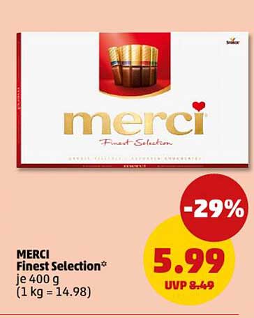 Sehen Sie sich jetzt das MERCI Finest Selection 400 g Angebot im Penny Prospekt an. Dieses Angebot ist gültig von 20.10.2025 bis 25.10.2025.