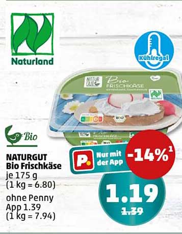 Sehen Sie sich jetzt das NATURGUT Bio Frischkäse je 175 g Angebot im Penny Prospekt an. Dieses Angebot ist gültig von 24.03.2025 bis 29.03.2025.
