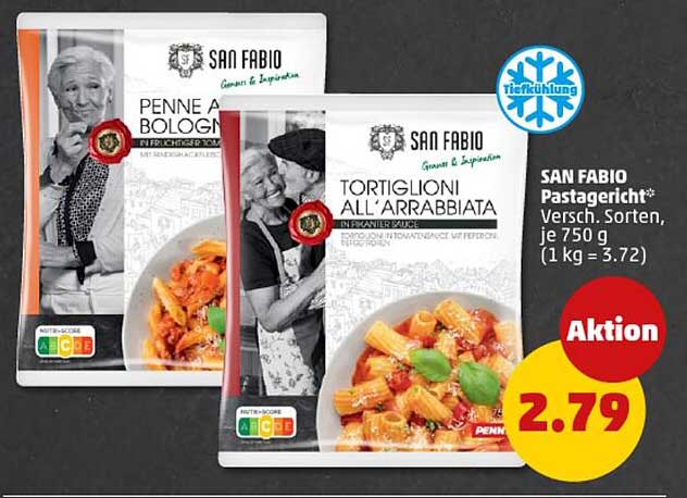 Sehen Sie sich das San Fabio Pastagericht* Angebot bei Penny an! Dieses fantastische Angebot ist jetzt im neuesten Penny Prospekt verfügbar. Nutzen Sie diese Chance und sparen Sie viel bei Ihrem Einkauf.