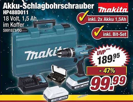 Möchten Sie sofort informiert werden, sobald das Akku-Schlagbohrschrauber Hp488D011 im Angebot ist? Melden Sie sich für unsere Angebots-Benachrichtigungen an. So erhalten Sie eine Benachrichtigung, sobald das Produkt zu einem günstigen Preis verfügbar ist.