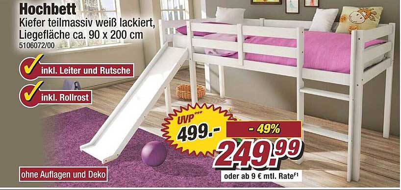 Entdecken Sie das großartige Hochbett Angebot im neuesten Poco Prospekt. Neben diesem Angebot finden Sie noch viele weitere attraktive Rabatte. Sie können das Hochbett einfach online über die Poco Website bestellen oder in einem Geschäft in Ihrer Nähe kaufen.