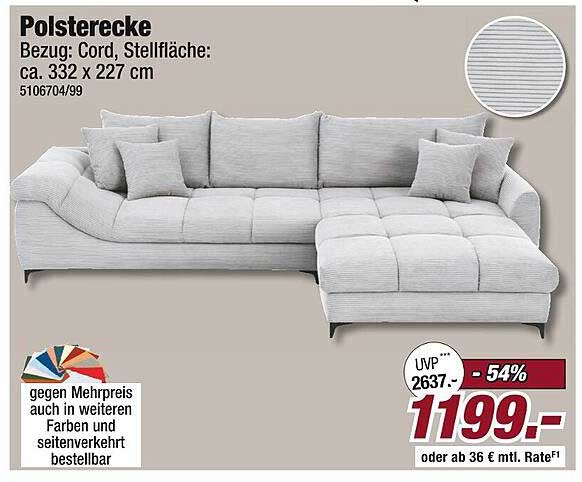 Sehen Sie sich jetzt das Polstercke - Cord, Stellfläche: ca. 332 x 227 cm Angebot im Poco Prospekt an. Dieses Angebot ist gültig von 26.04.2025 bis 02.05.2025.