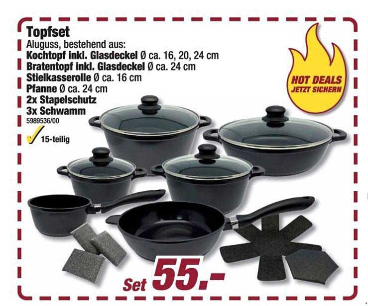 Sehen Sie sich jetzt das Topfset 15-teilig aus Aluguss inkl. Glasdeckel Angebot im Poco Prospekt an. Dieses Angebot ist gültig von 12.07.2025 bis 18.07.2025.