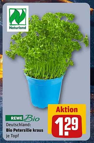 Sehen Sie sich jetzt das Bio Petersilie kraus je Topf Angebot im REWE Center Prospekt an. Dieses Angebot ist gültig von 27.10.2025 bis 02.11.2025.